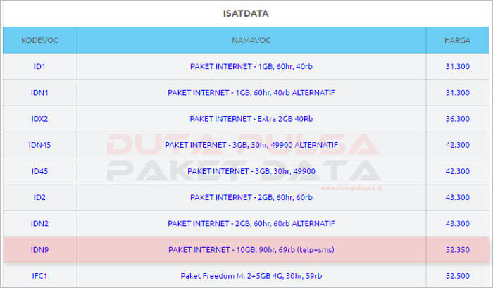 Silahkan lihat potongan gambar daftar harga pulsa paket data Indosat dibawah ini: