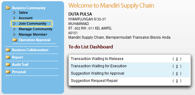 Pertama-tama silahkan masukkan kodeagen anda dengan klik menu Join Community. Setelah itu klik tombol NEW.
