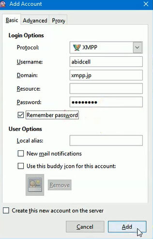 Masukkan username dan password Jabber yang sudah anda daftarkan (baca : Cara Daftar Jabber), Klik Add untuk melanjutkan.
