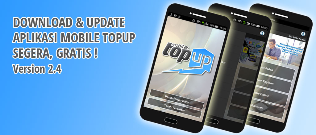 Kabar gembira bagi anda pengguna Aplikasi Mobile Topup. Aplikasi mobile gratis yang powerfull, dengan segudang fitur dan manfaat untuk transaksi pembelian pulsa dan layanan pembayaran PPOB. Hari ini pada tanggal 13 Oktober 2016 versi terbaru dari Aplikasi Mobile Topup Resmi dipublikasikan, beberapa fitur baru yang ditambahkan demi menjaga kepuasan pelanggan dan pengguna.